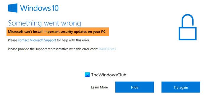 When installing a security update on your Windows PC, if you receive an error saying that Microsoft can't install important security updates Mistake Code 0x800703ed or 0x80072ee7 on your Windows 11 or Windows 10 computer, then this post will help you resolve information technology. Information technology may usually happen when you have a security update available before a standard update, just Windows Update would not install the security update until yous install the newer update.